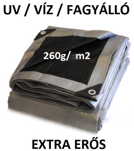 Ponyváink erősségét a következők biztosítják: - műanyag megerősítésű sarkok - amelyek megakadályozzák a szélszakadásokat, - UV szűrő lefedettség - hosszabb ellenállás a napfénnyel szemben, - A ponyva kétoldalas laminálása - ami 100% -ban vízálló, - Az élekhez hegesztett rögzítőzsinór minden szél mentén - erősíti és megakadályozza a szakadást, - Rozsdamentes acél fűzőlyukak a ponyva teljes kerületén 1 méterenként, - A ponyvák alkalmazásának optimális hőmérsékleti tartománya: -20 ° C és 40 ° C között vanMűszaki adatok: - 4x5 m alapterület - 260g/m2 sűrűség - Színe : ezüst-fekete - Súly: 5,2 kg - Szilárdság: 740-770 N - Anyaga: polietilén - (a tényleges méret eltérhet a megadott + - 7% -tól)